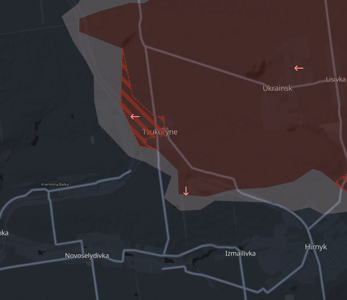 На Курахівському напрямі російські паблики пишуть про повне захоплення селища Цукуріне. Україна цього не підтверджує. За версією Deep State, населений пункт наполовину захоплений, наполовину в "сірій зоні".