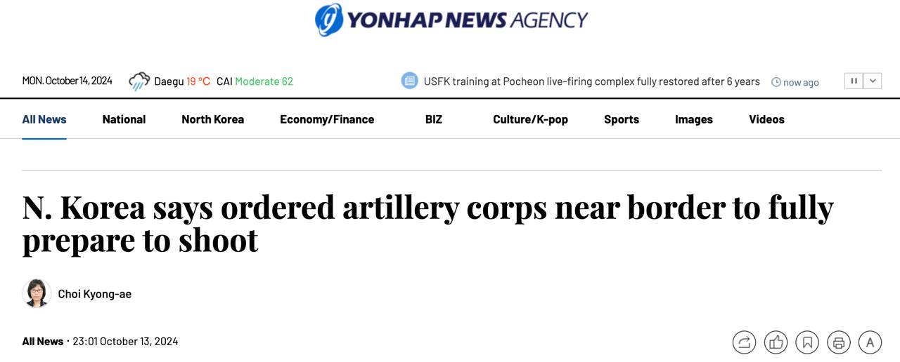 Сестра Кім Чен Іна заявляє, що артилерійським корпусам КНДР біля кордону віддано наказ повністю підготуватися до стрілянини, і Пхеньян готовий вжити "рішучих дій у відповідь" у разі, якщо безпілотники знову будуть запущені.