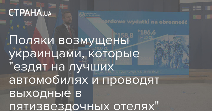 "Справа в тому, що наше суспільство дуже обурене виглядом молодих людей з України, які їздять на кращих автомобілях і проводять вихідні у п'ятизіркових готелях. І це несправедливо стосовно поляків, які роблять свій внесок у охорону здоров'я, пільги, освіту, постачання зброї та іншу допомогу", - сказав чиновник.