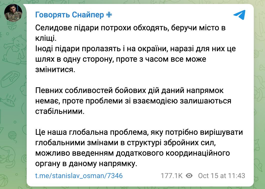 Місто Селидове Донецької області вже знаходиться у півкільці, тому ЗСУ будуть змушені відступити.