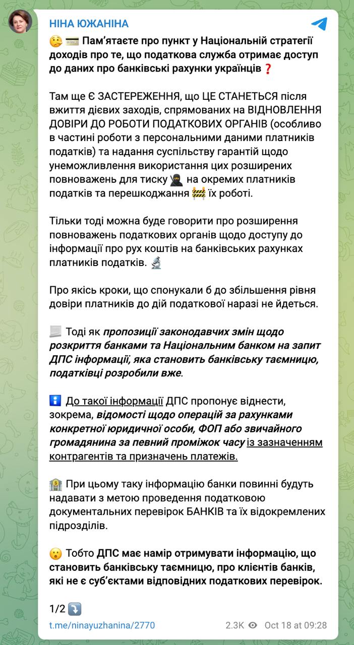 Южаніна пише, що ці зміни розглядаються в податковому комітеті таємно, і вона дізналася про них від НБУ.