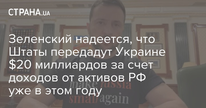 Зеленський сподівається, що Штати передадуть Україні 20 мільярдів доларів за рахунок доходів від активів РФ вже цього року