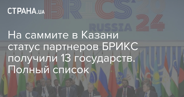 На саміті БРІКС у Казані затвердили статус країн-партнерів для 13 держав.