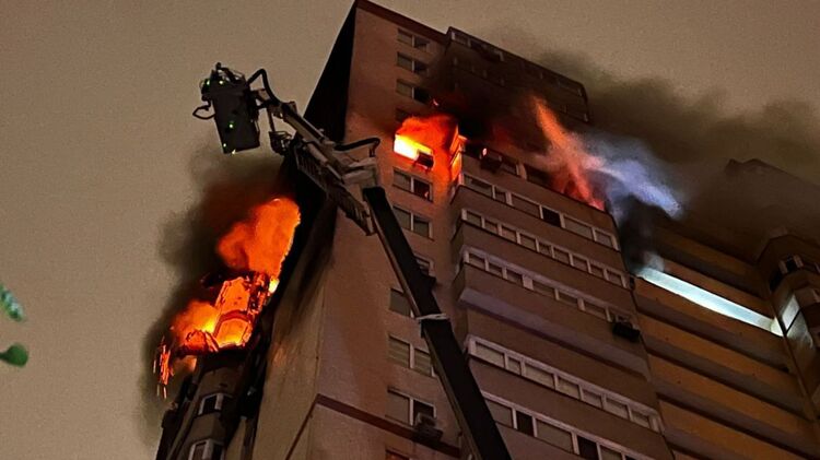 Нагадаємо, сьогодні ввечері у Києві пролунали вибухи. Внаслідок влучення дрону до 25-поверхового житлового будинку почалася пожежа. Проводиться евакуація мешканців.