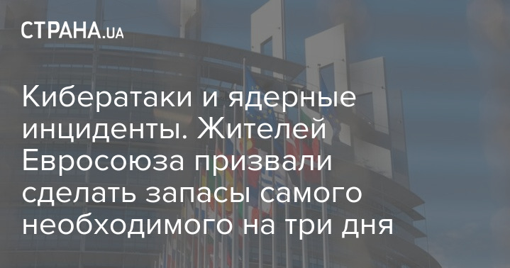 Усі жителі Євросоюзу мають забезпечити себе запасами найнеобхіднішого на 72 години у разі кризових ситуацій, таких як кібератаки та диверсії, а також на випадок хімічних, біологічних чи ядерних інцидентів.