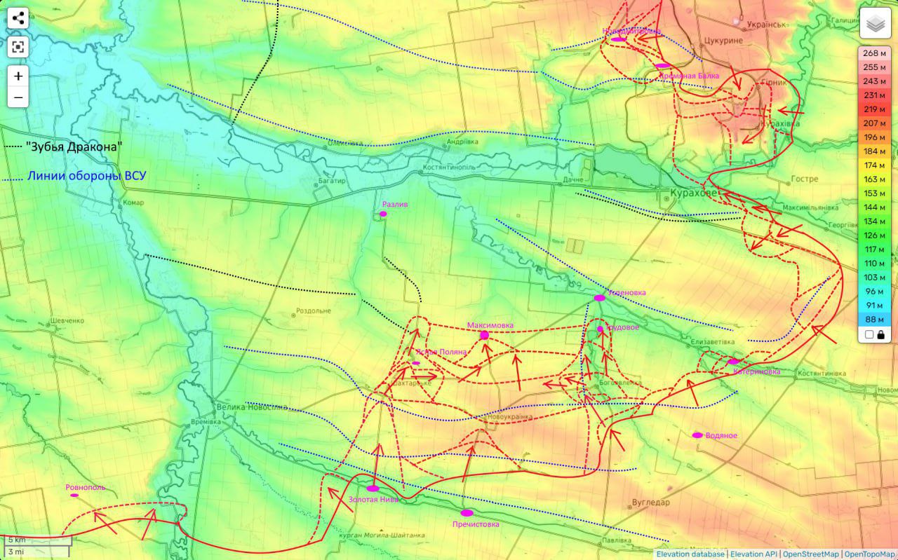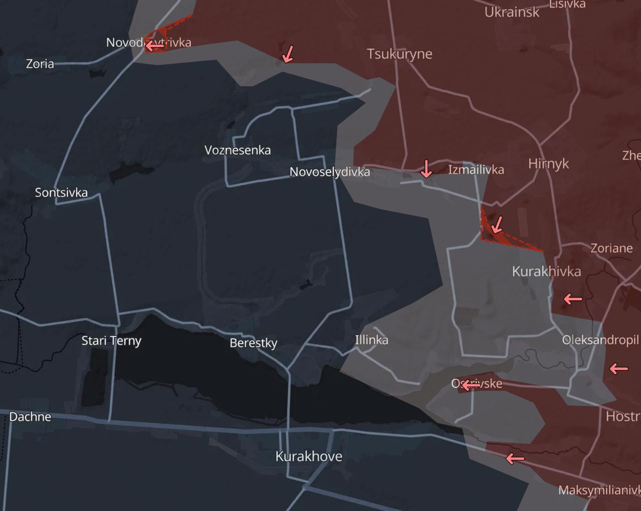 11:58 Російські війська практично захопили Новодмитрівку на північ від Курахового. Дорога з неї веде на захід від міста, що дозволить оточити його.