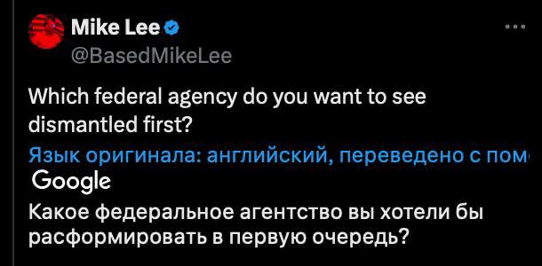 "Яке федеральне агентство ви хотіли б розформувати насамперед?" - написав Лі.