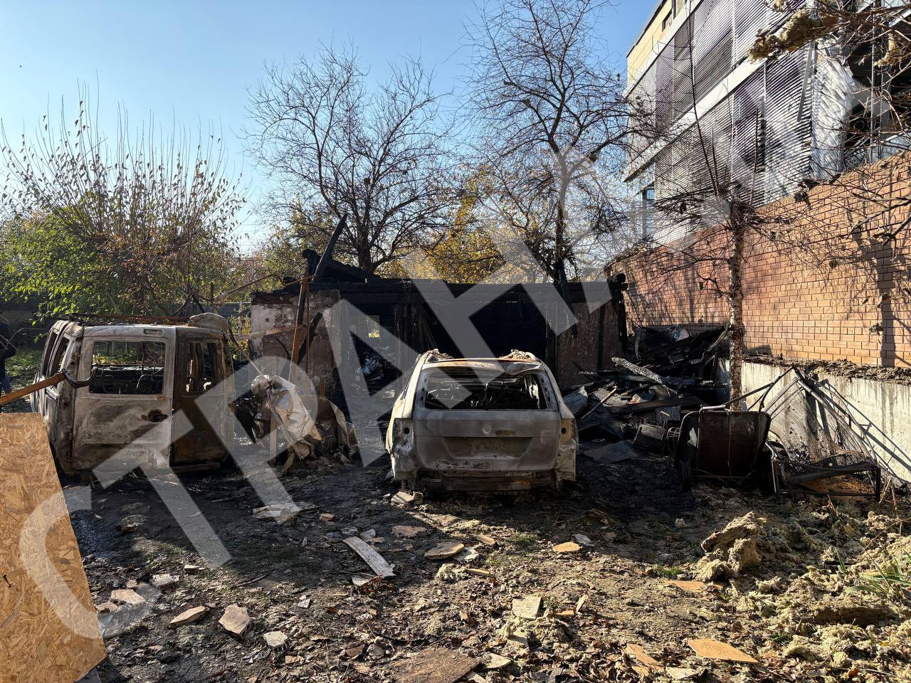 Пошкоджено фасад та дах, згоріли гараж по сусідству та два авто.