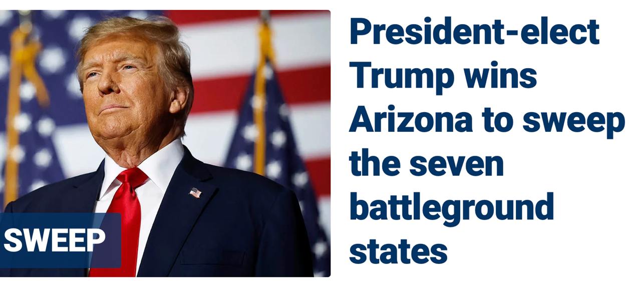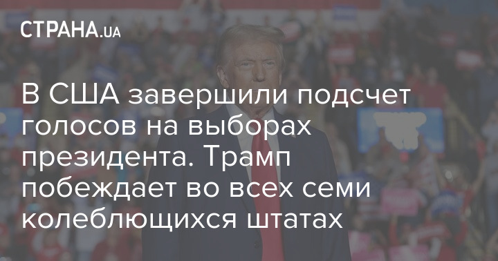 У США завершили підрахунок голосів під час виборів президента. Дональд Трамп переміг Камалу Харріс в Арізоні - останньому з семи вирішальних штатів. У результаті він одержав ще 11 голосів виборців.