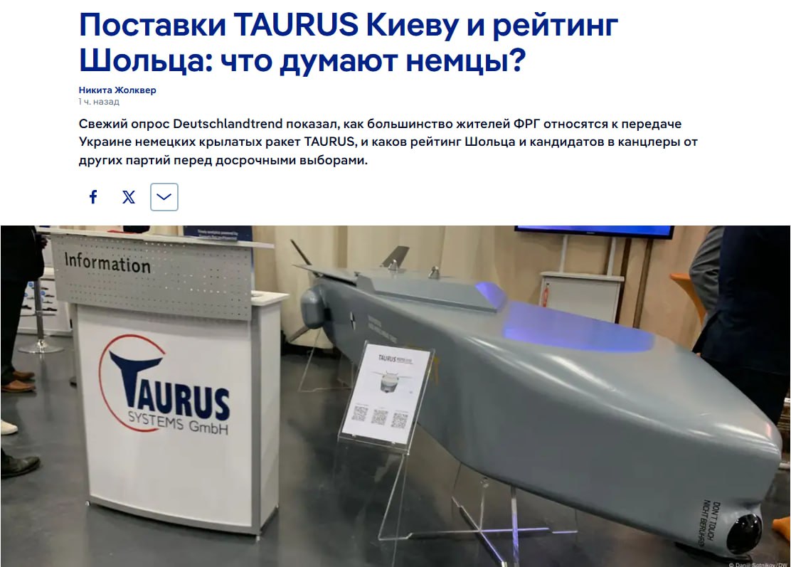 Днями канцлер ФРН Олаф Шольц вкотре заявив, що не готовий постачати Україні ракети Taurus і видавати дозвіл на використання іншої зброї німецького виробництва для ударів по цілях углиб РФ.