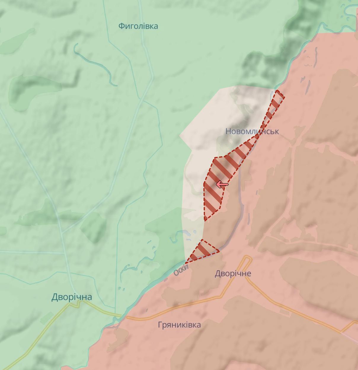 На півночі, в Харківській області, росіяни просунулися в Кругляківці на південь, а також розширили свій плацдарм на лівому березі річки Оскол на північ від Дворічної.