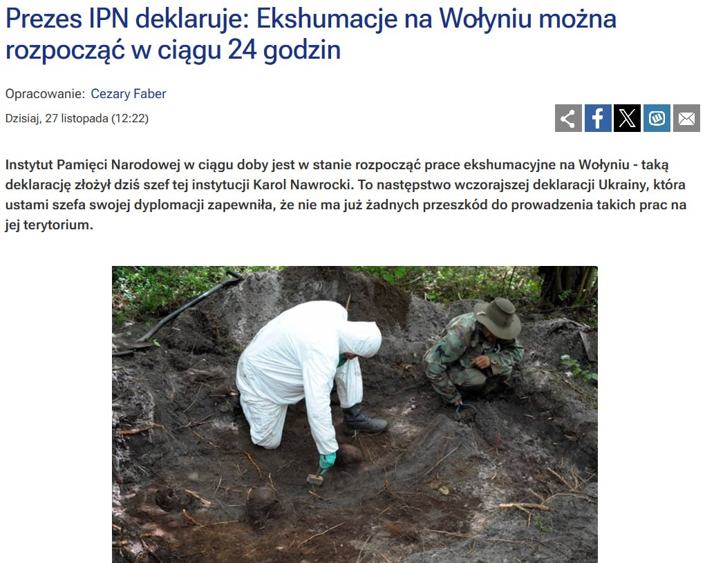 Інститут нацпам'яті Польщі (ІНП) може розпочати ексгумаційні роботи на Волині протягом 24 годин.