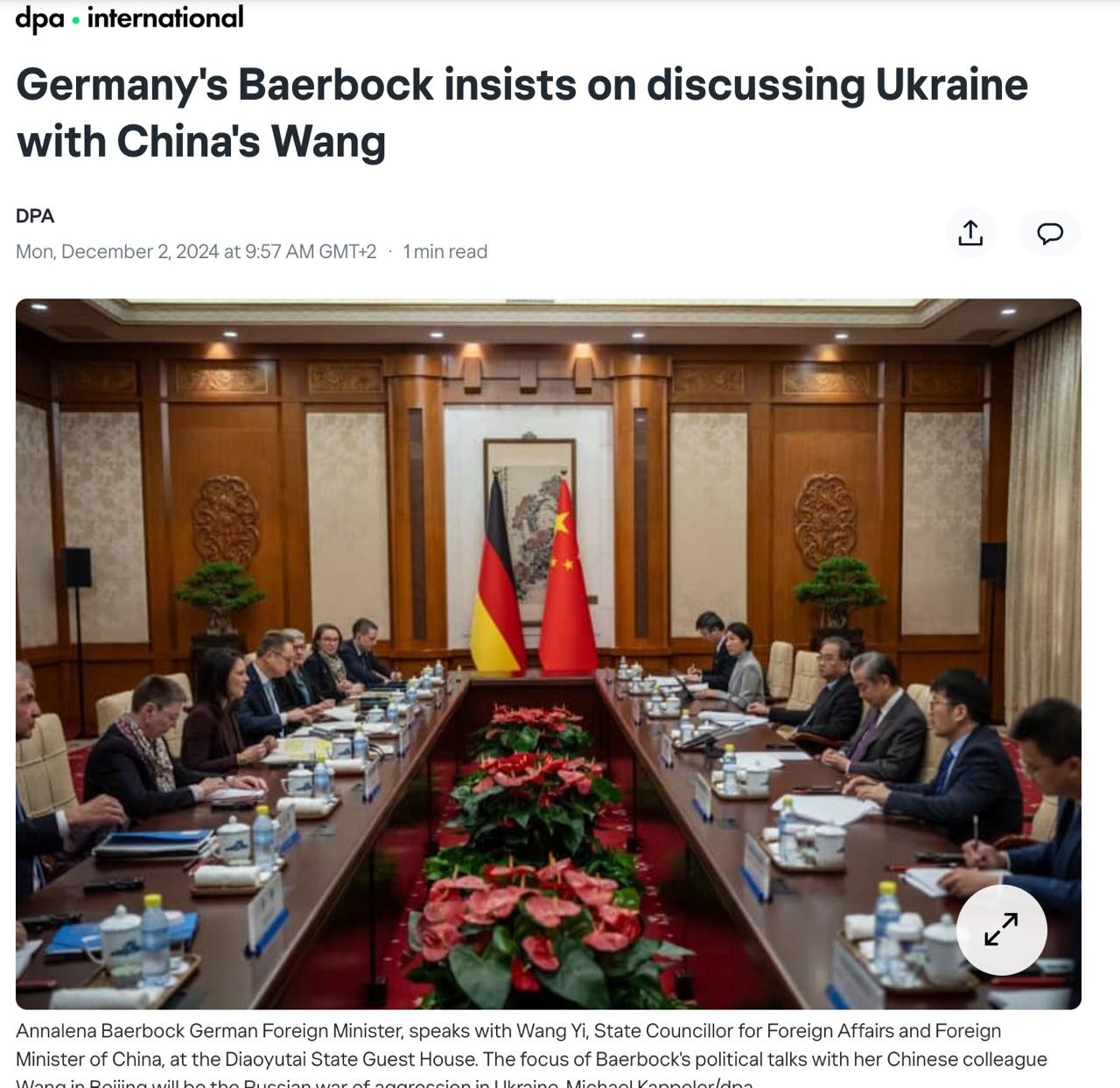 Напередодні Бербок публічно розкритикувала Китай, звинувативши його у постачанні зброї Росії.