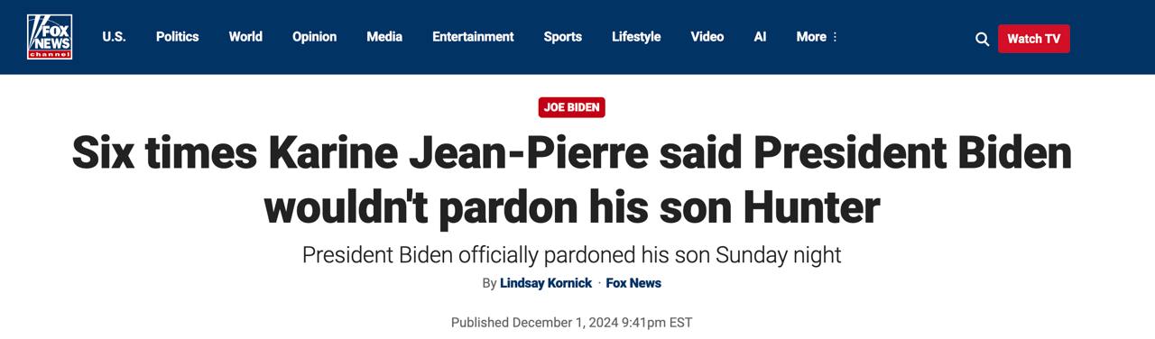 Газета The New York Times звернула увагу на те, що Байден не лише позбавив свого сина "приниження" у вигляді двох кримінальних звинувачень, а й врятував його від значного терміну у федеральній в'язниці. Вирок мали винести в середині грудня. Поки що Хантера визнали винним лише присяжні.