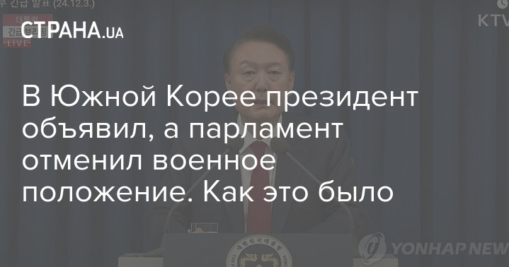 Кілька годин тому депутати парламенту Південної Кореї проголосували за скасування воєнного стану, запровадженого президентом. І його голова заявив, що воєнний стан скасовано.