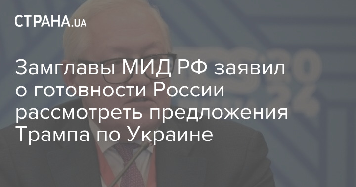 Заступник глави МЗС РФ Сергій Рябков заявив про готовність Росії розглянути пропозиції новообраного президента США Дональда Трампа щодо України.
