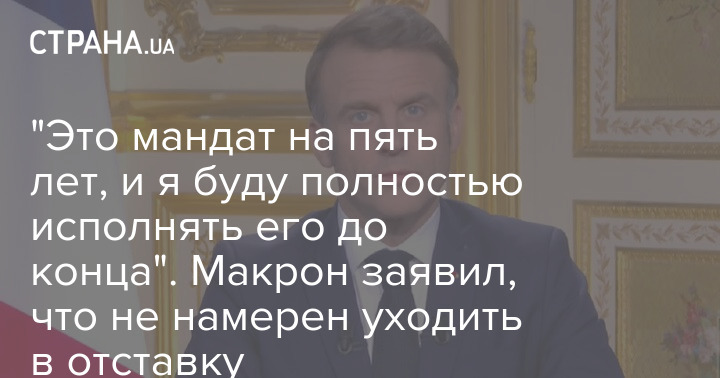 Президент Франції Еммануель Макрон у зверненні до французів заявив, що не має наміру йти у відставку і хоче до кінця відпрацювати свій другий п'ятирічний мандат на посаді президента країни, який має закінчитися у 2027 році.
