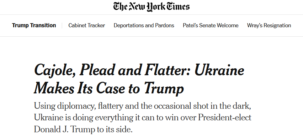 Про це пише газета The New York Times у своїй статті про те, як українська влада намагається порозумітися з обраним президентом США.