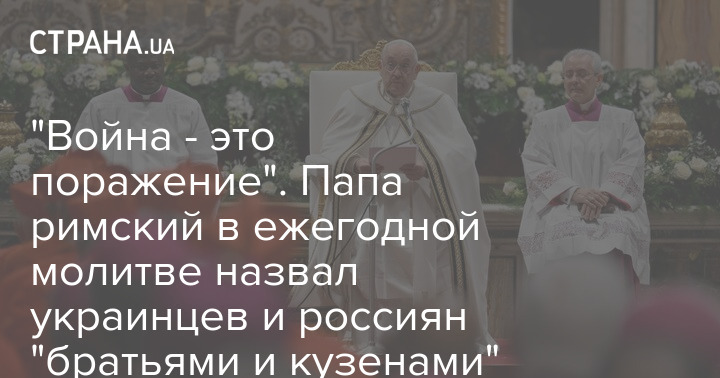У ході щорічної молитви за мир папа римський Франциск назвав українців та росіян "братами та кузенами".