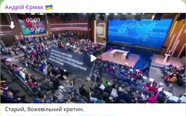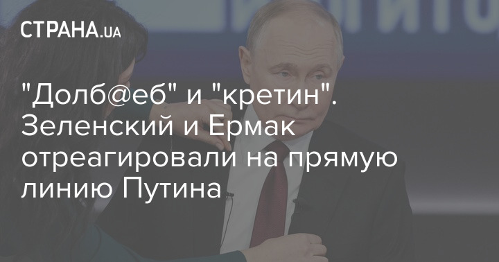 Володимир Зеленський та голова Офісу президента Андрій Єрмак у недипломатичних висловлюваннях прокоментували традиційну щорічну "Пряму лінію з Володимиром Путіним". Перший назвав президента РФ з використанням мату, другий вилаявся м'якше.