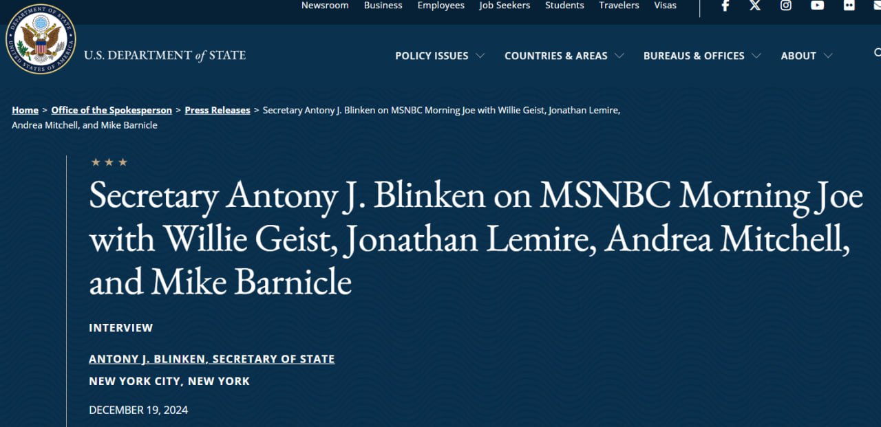 Про це заявив держсекретар США Ентоні Блінкен в інтерв'ю MSNBC Morning.
