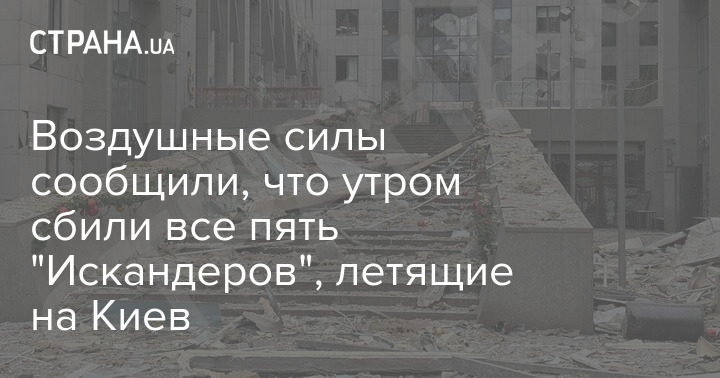 Сьогодні вранці росіяни завдали удару по столиці України 5 балістичними ракетами "Іскандер-М"/KN-23. Усі були збиті.