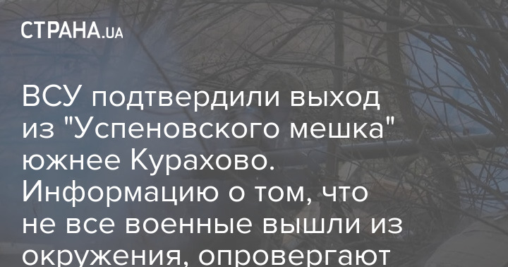 Збройні сили України офіційно підтвердили вихід із "Успенівського мішка" на південь від Курахового Донецької області.
