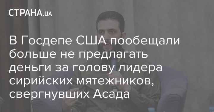 У Державному департаменті США пообіцяли лідеру збройного угрупування "Хайат Тахрір аш-Шам" (ХТШ) Ахмаду аш-Шараа, більш відомому як Абу Мухаммед аль-Джулані, що більше не пропонуватимуть винагороду за його затримання.