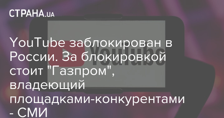 YouTube заблокований у Росії. За блокуванням стоїть "Газпром", який володіє майданчиками-конкурентами - ЗМІ