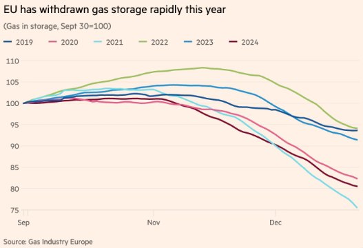 Також FT повідомляє, що у Європі зіткнулися з конкуренцією за імпорт ЗПГ з боку країн Азії. Це призвело до потреби більше витрачати накопичені запаси.