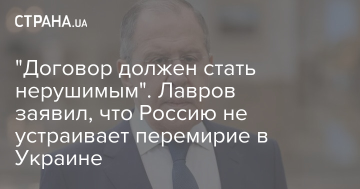 "Договір має стати непорушним". Лавров заявив, що Росію не влаштовує перемир'я в Україні