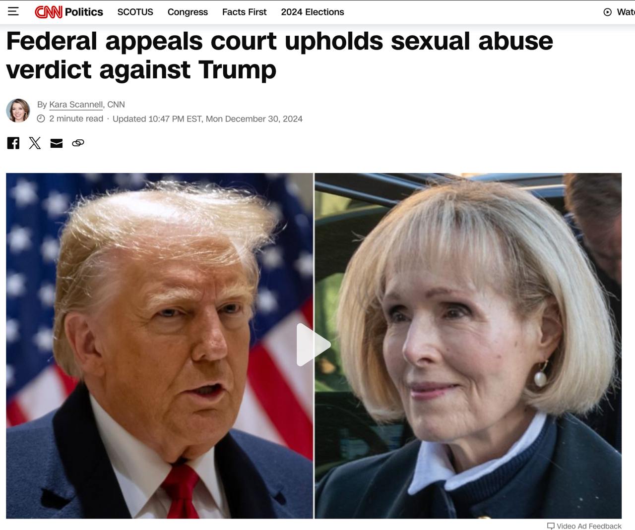 У січні 2024 року інший суд ухвалив виплатити Керрол 83,3 млн доларів за наклеп і шкоду репутації через заяви Трампа. Розгляд апеляції у цій справі триває.