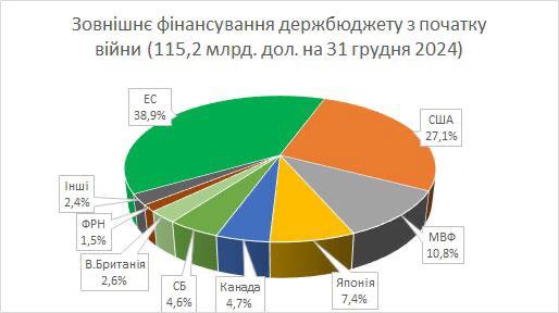 Загалом із початку війни Україні виділили 115 мільярдів доларів фінансової (не військової) підтримки.
