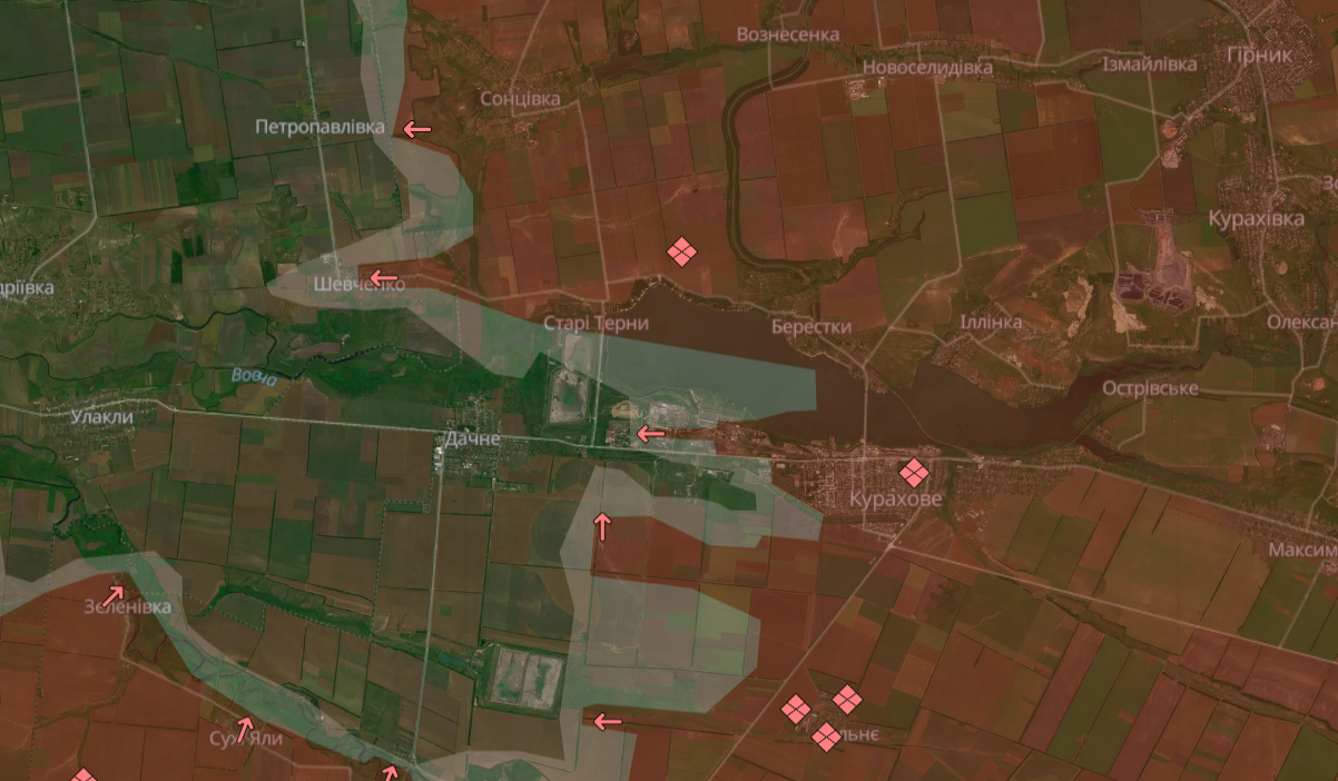 Карта українського військового паблику Deep State показує, що росіяни захопили східну частину села.