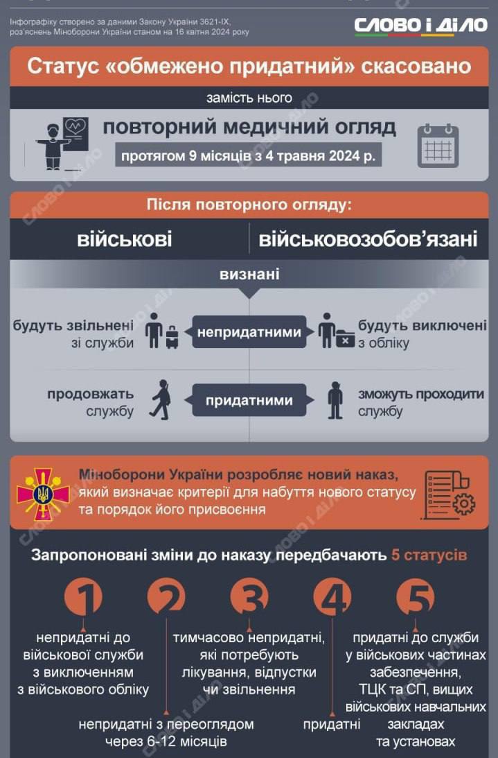 Таку вимогу було закладено ще навесні до закону про забезпечення прав військових на соціальний захист. Згідно з документом, всі "обмежено придатні" мають пройти ВЛК до 4 лютого 2025 року включно.