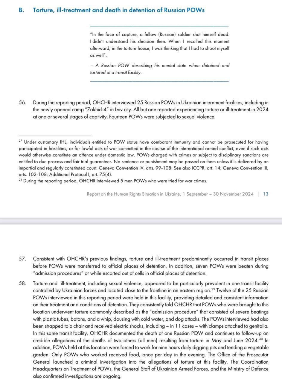 Зазначимо, що у доповіді ООН тортурам щодо полонених росіян присвячено цілий розділ.
