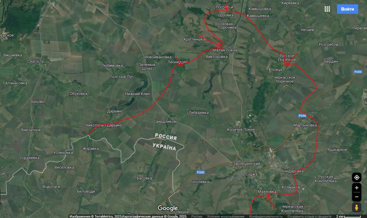 Судячи з неї, лінія фронту та сіра зона змістилися до села Бердін на північний схід від Суджі приблизно на три кілометри. Але українського контролю там немає, і територія ця позначена як оспорювана.
