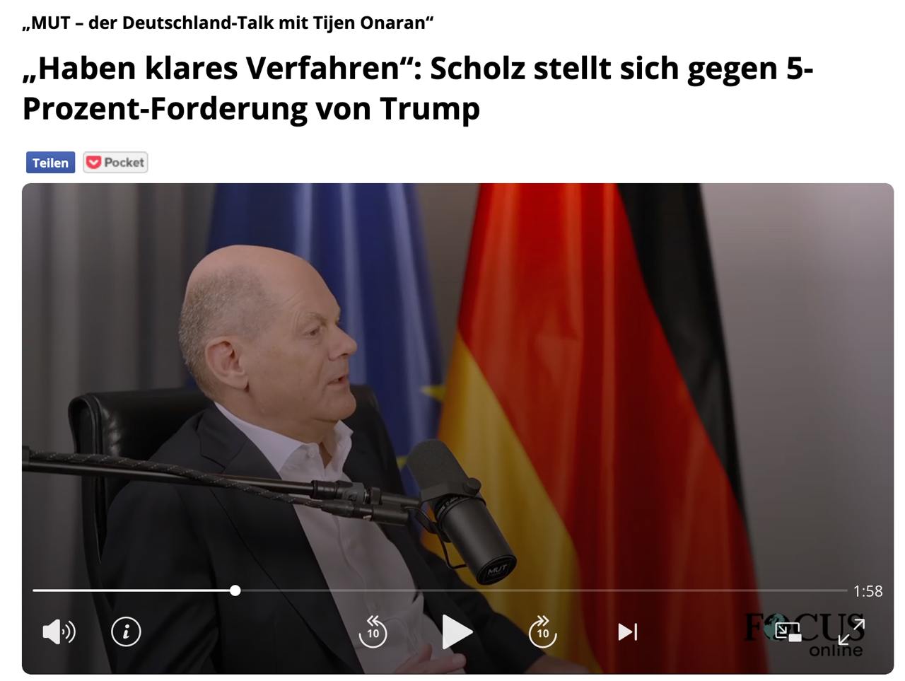 Канцлер ФРН Олаф Шольц продовжує виступати проти зростання військових витрат. Він розкритикував заклик Дональд Трампа збільшити їх одразу до рівня 5% від ВВП.