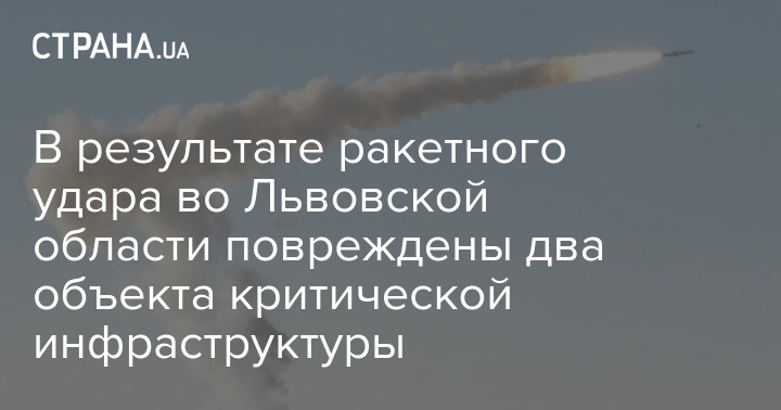 Внаслідок ракетного удару у Львівській області пошкоджено два об'єкти критичної інфраструктури