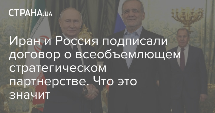 Президенти Росії Володимир Путін та Ірану Масуд Пезешкіан підписали договір про всеосяжне стратегічне партнерство.