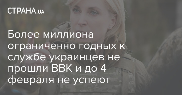 "На сьогоднішній день більшість із них (понад 1 мільйон людей!) ще не пройшли відповідні медогляди. У тому числі тому, що не отримували викликів на ВЛК або не можуть їх отримати в ТЦК (бо там черги). Очевидно, що абсолютно нереально пропустити через ВЛК таку кількість людей до 4 лютого", – написала чиновник.