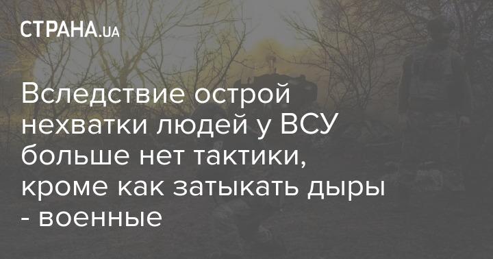ЗСУ відчувають гостру нестачу особового складу, через що стало неможливим застосовувати якусь тактику бою, а доводиться просто затикати дірки там, де вони утворюються.