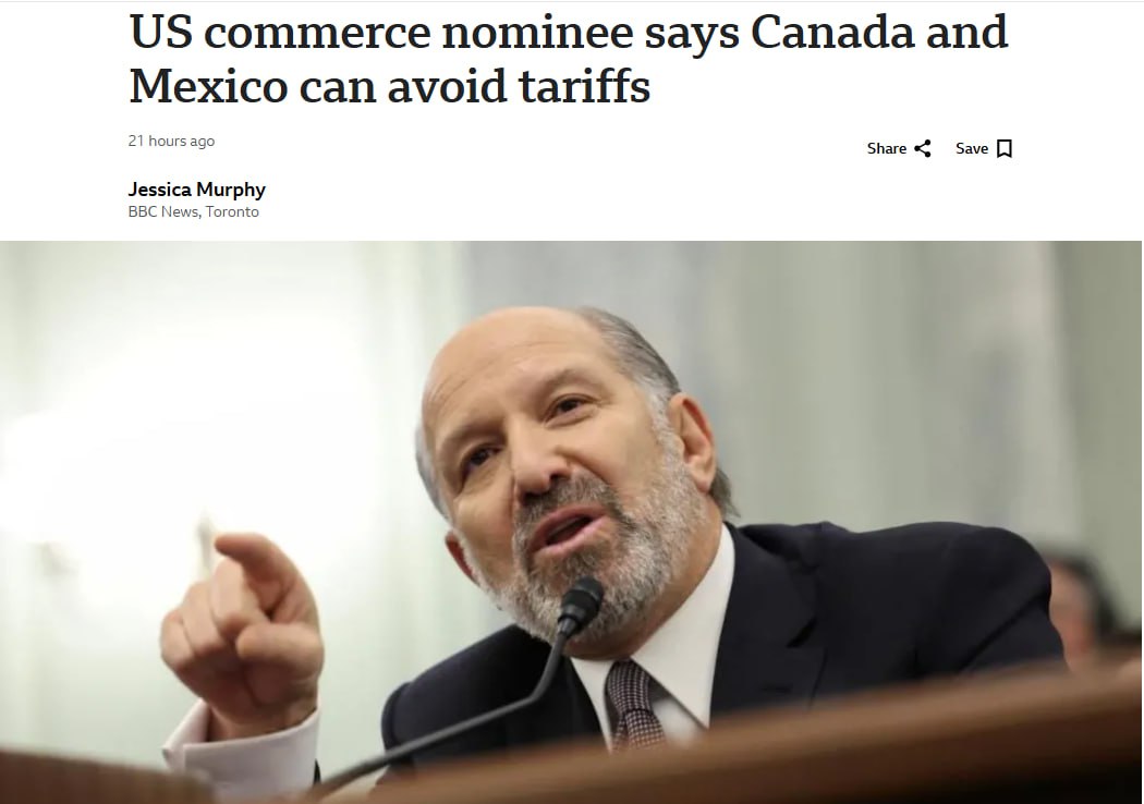 Кандидат у міністри торгівлі США Говард Лютнік заявив, що у суботу Вашингтон запровадить мита проти Канади та Мексики у розмірі 25%. Але їх можна уникнути, якщо країни закриють свої межі для наркотику фентанілу.