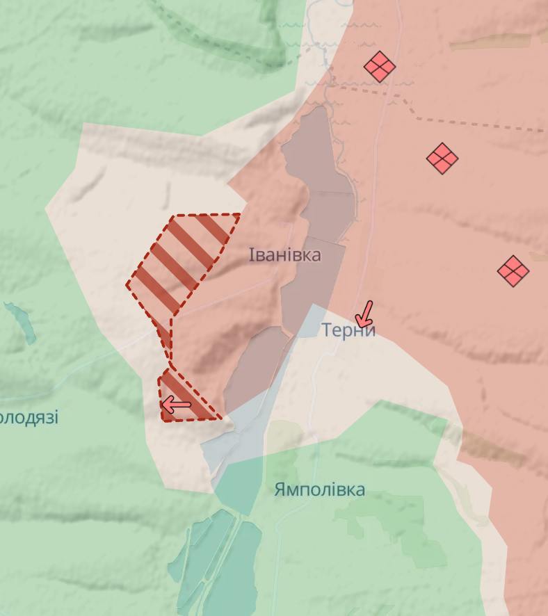 15.34 Армія РФ розширила свій плацдарм на правому березі річки Жеребець в Іванівці, що на Лиманському напрямку, просуваючись у бік Колодязів.