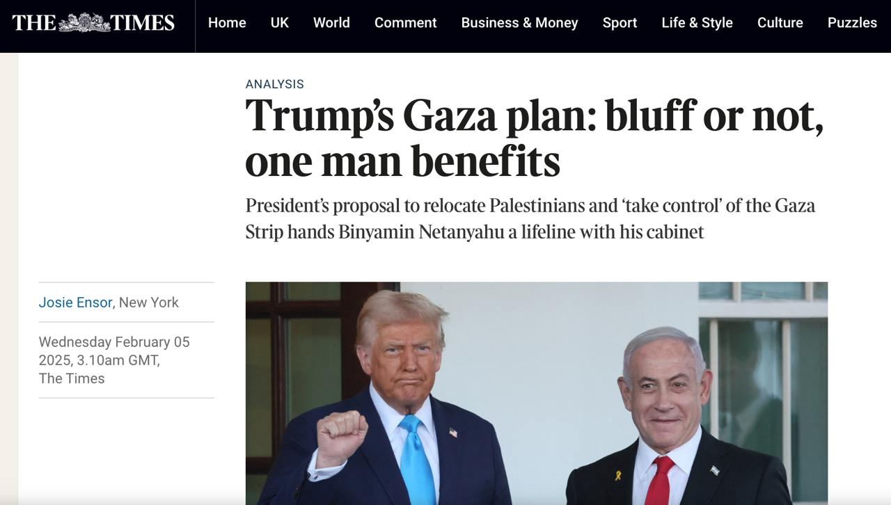 Обіцянки Трампа переселити палестинців із Гази може бути піар-підтримкою Нетаньяху - The Times