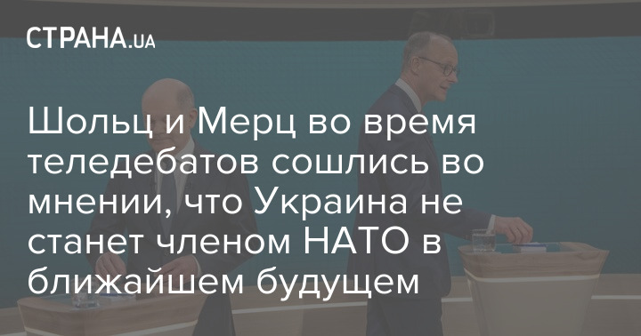 Канцлер Німеччини Олаф Шольц та головний претендент на цю посаду Фрідріх Мерц провели теледебати та зійшлися в одному: Україна не буде членом НАТО незабаром.