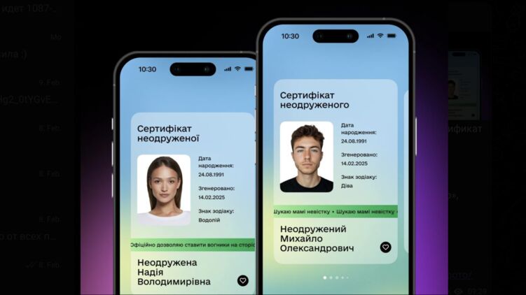 До додатку "Дія" додали сертифікат сімейного статусу, у тому числі холостяка та холостячки. Функцію було запроваджено до Дня закоханих.