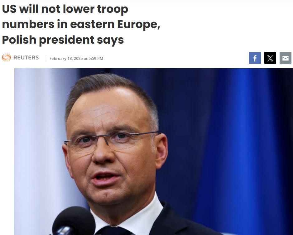 Він додав, що міністр оборони США Піт Хегсет раніше заявив, що Польща може "очікувати посилення американської присутності".