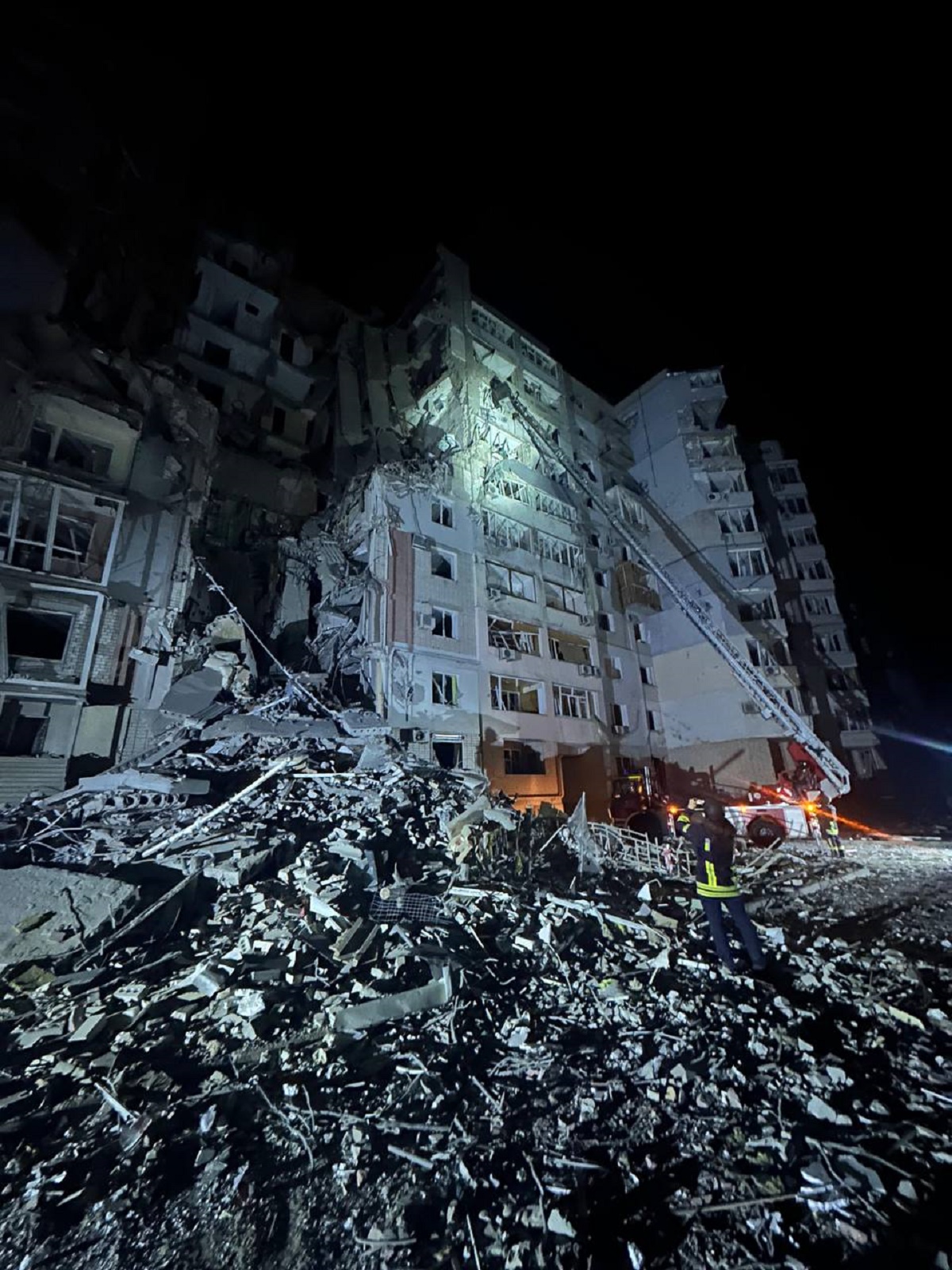 Сьогодні вночі росіяни вдарили авіабомбою по житловому десятиповерховому будинку. Зруйновано п'ятнадцять квартир – з 1 по 10 поверх одного з під'їздів. Постраждали шестеро людей.