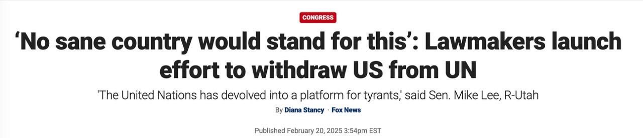 "ООН перетворилася на платформу для тиранів і місце для нападок на Америку та її союзників. Ми повинні припинити за це платити. Оскільки президент Трамп революціонізує нашу зовнішню політику, ставлячи Америку на перше місце, ми повинні вийти з цієї фіктивної організації і віддати пріоритет реальним альянсам, які забезпечують безпеку і процвітання".